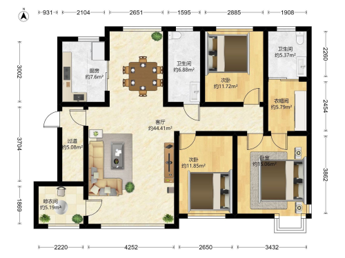 房屋戶型: 3 室2廳 1 廚1衛(wèi)
