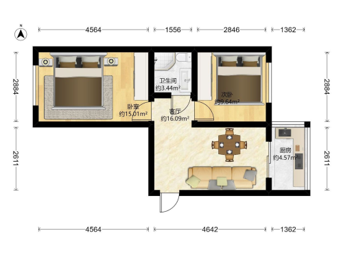 房屋戶型: 2 室1廳 1 廚1衛(wèi)